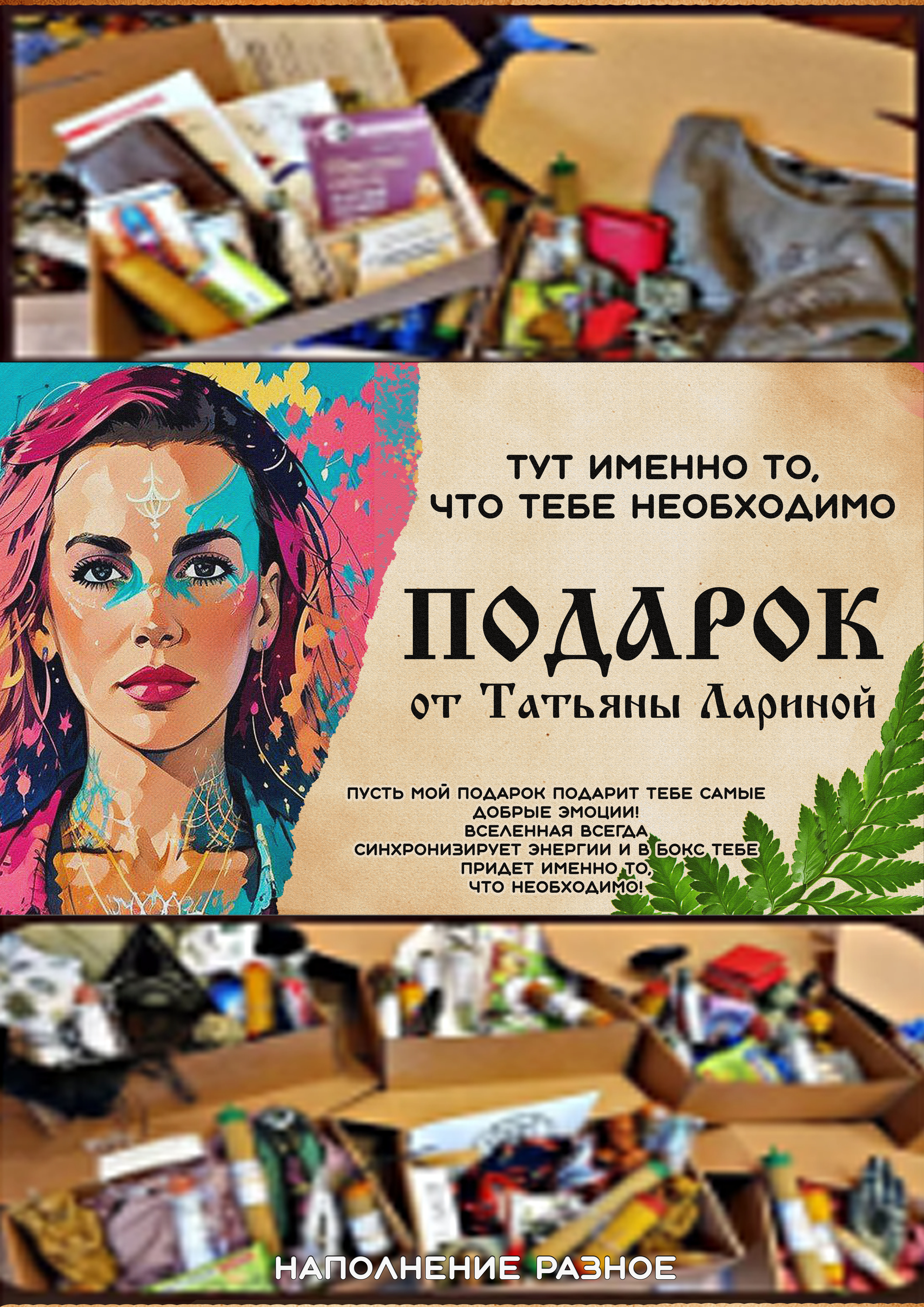 Пусть мой подарок подарит тебе самые добрые эмоции! Вселенная всегда синхронизирует энергии и в бокс тебе придет именно то, что необходимо!